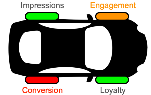 You need to figure out why so you can fix that tire. Maybe you need to improve your offer, test different pricing, or work on your sales pitch. Getting more impressions or leads wonāt help you if you canāt close the deal. Fix that conversion tire first!